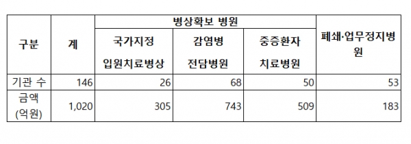 코로나19로 손실을 입은 146개 의료기관에 1020억원을 지급한다.