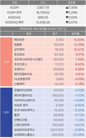 ① 에이비온, 주주배정 유증 청약률 72.3% = 주주배정 유상증자 신주 2060만주 가운데 1490만2876주 청약(청약률 72.34%). 신주인수권 청약 1353만7287주, 초과청약 136만5589주 전량 배정. 남은 실권·단수주 569만7124주는 11월 25~26일 일반공모로 모집 예정. 주금 납입·환불일 11월 28일, 신주 상장 예정일 12월 11일.② 프레스티지바이오파마, 허셉틴 바이오시밀러 남미 4개국 독점 공급 계약 = 허셉틴 바이오시밀러 'TUZNUE'에 대해 아르헨티나·멕시코·볼리비아·파라과이 4개국 독점 판매