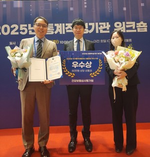 건강보험심사평가원(원장 강중구, 심사평가원)은 25일 국가데이터처가 주관하는 제37회 통계작성기관 워크숍에서 '국가통계 통합DB 자료관리 우수기관'으로 선정됐다.국가데이터처는 국가통계포털(KOSIS)을 통해 국민에게 통계를 제공하는 436개 기관을 대상으로 수록 자료에 대한 관리 수준을 평가한 결과 심사평가원을 포함한 8개 기관을 우수기관으로 선정했다.심사평가원은 국가통계포털을 통해 제공되는 건강보험통계 등 8종의 국가승인통계를 정확하고 신속하게 제공해 왔으며 이를 위한 담당자들의 적극적인 협업과 참여가 높은 평가를 받아 공공기관