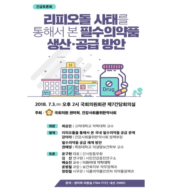 이와 관련 더불어민주당 권미혁 의원실과 건강사회를위한약사회는 3일 오후 국회의원회관에서 긴급토론회를 갖기로 했다. 이번 사태를 계기로 필수의약품 안정적 수급방안을 모색하면서 이른바 공공제약사 도입이나 필수의약품 컨트롤타워 구축 필요성을 재환기하려는 취지로 보인다.