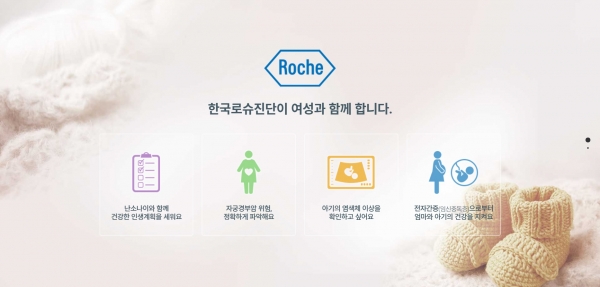 홈페이지에는 p자궁경부암을 유발하는 고위험군 HPV 감염 여부 및 유형을 확인해 자궁경부암의 발병 가능성을 예측할 수 있는 HPV 검사 p난소 나이를 확인하여 여성 스스로 인생계획을 세울 수 있도록 돕는 AMH(항뮬러관호르몬, Anti-Mullerian Hormone) 검사 (난소나이검사) p산모와 태아 모두의 건강을 위협할 수 있는 전자간증(임신중독증)을 진단하는 전자간증 검사(sFlt-1/PlGF 정량검사) p비침습적 산전 기형아 검사(Non-Invasive Prenatal Test, 이하 NIPT 검사)인 하모니(Harmony) 검사에 대한 한국로슈진단의 여성 건강 포트폴리오를 소개하고 있다.