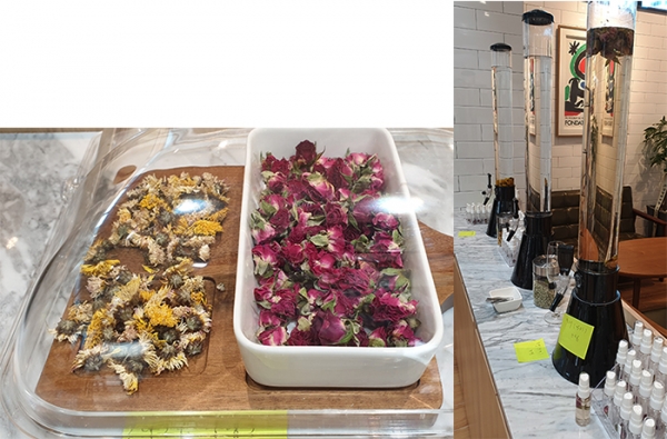 또 이탈리아 라마르조꼬 커피 머신과 국내 최정상 로스팅 팩토리를 통해 공급받는 시그니처 커피류, 자가 오븐을 통한 베이커리까지 함께 준비돼 맛과 멋, 그리고 개인 맞춤형 코스메틱까지 결합된 신개념의 코스메틱쇼룸카페다.