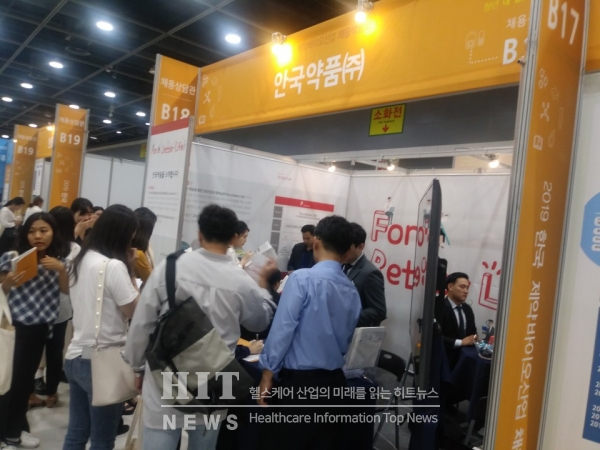 3일 '2019 한국 제약바이오산업 채용박람회'에 참가한 대형제약사 상담부스에 제약바이오 취업을 희망하는 취준생들의 발이 끊이질 않고 있다.