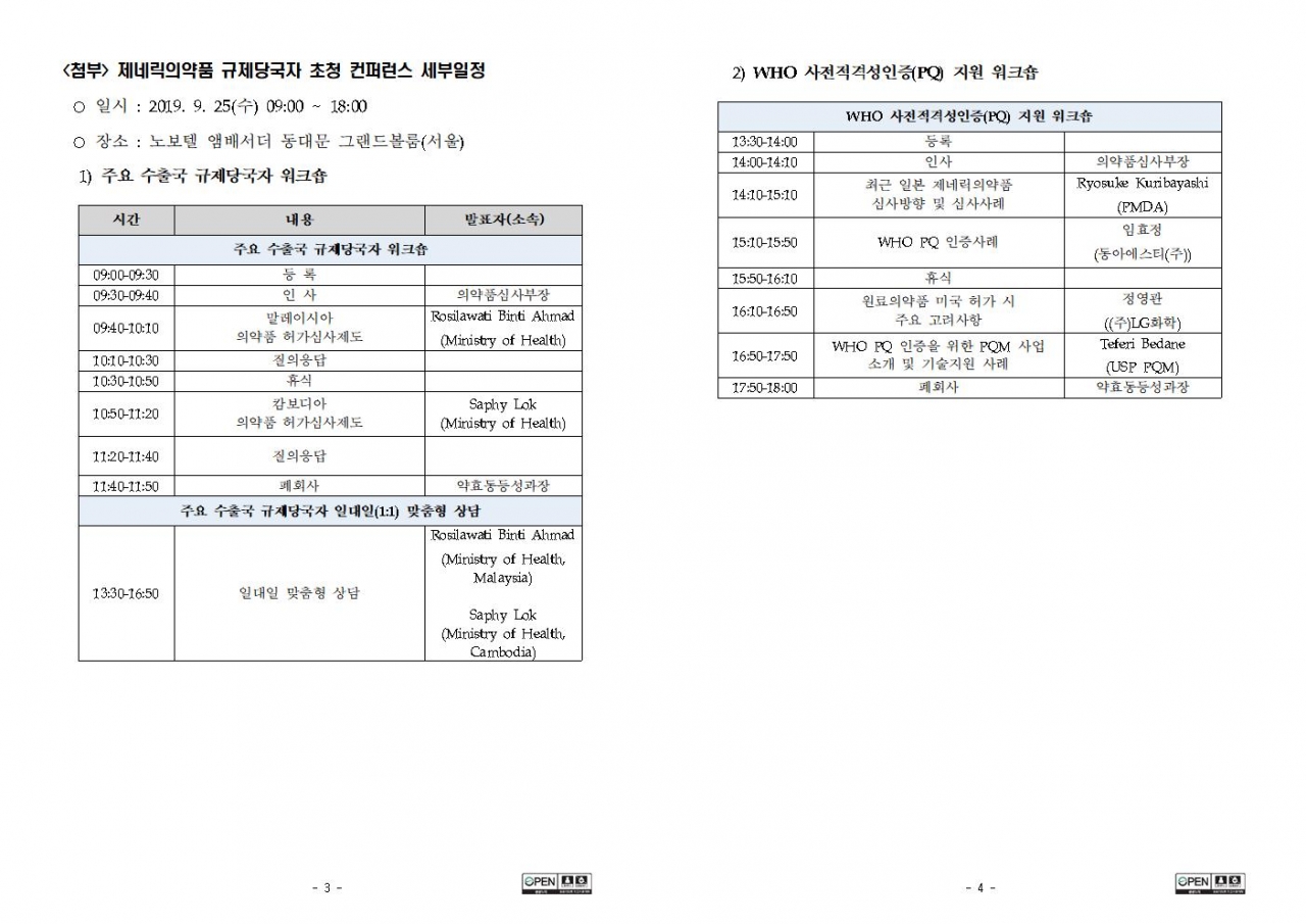 컨퍼런스에서는 말레이시아·캄보디아 의약품 허가심사제도를 소개하고 맞춤형 상담을 진행하며, 일본의 제네릭의약품 심사방향과 WHO 품질인증(PQ)에 대해서도 다루어질 예정이다.
