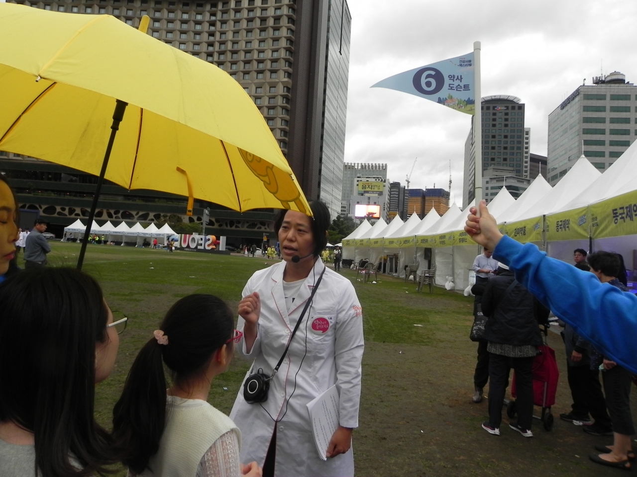 지난 22일 오후 4시, 서울 동대문구약사회 유옥하 총무위원장(우주약국 약국장)은 제7회 건강서울페스티벌의 '도슨트' 약사가 되어 아이들과 그의 어머니 등 시민과 기자에게 이같이 밝혔다. 유 약사는 이날 26개의 약사체험-상담부스에 대한 특징과 기능을 20여분 간 소개했다.