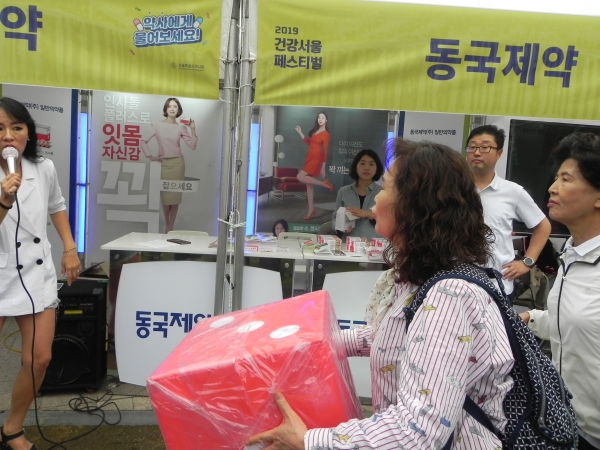 동국제약은 자사 OTC 관련 퀴즈 이벤트를 진행하며, 시민에게 주사위를 굴리게 해 제품을 증정했다.
