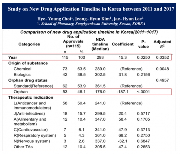 이번 연구조사는 이재현 성균관대학교 약학대 교수가 연구 책임을 맡아, 2011년부터 2017년까지 국내에서 허가받은 글로벌 제약사(KRPIA 회원사 23개사)의 115개 신약을 대상으로 했다. 이번 조사 내용은 14일 개최된 대한약학회 추계학술대회에서 포스터 전시를 통해 결과가 발표됐다.