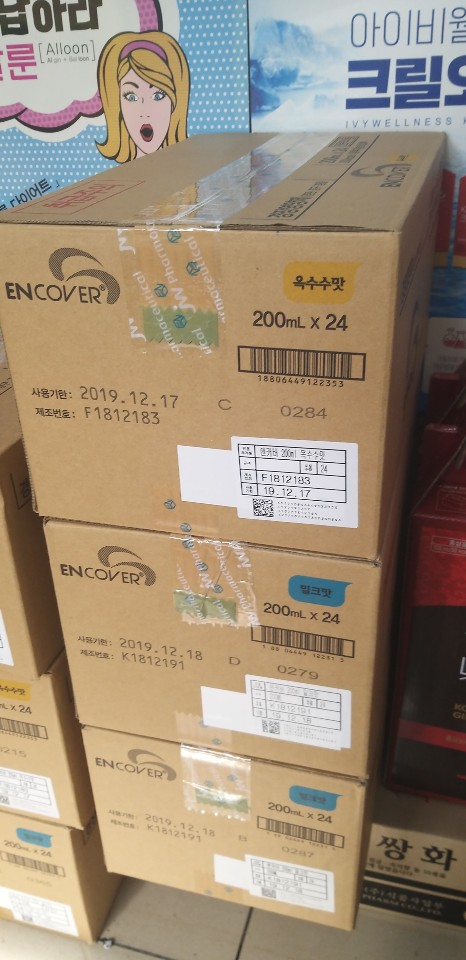 약국 한 켠에 엔커버 포장 박스를 비치해 둔 모습이다.