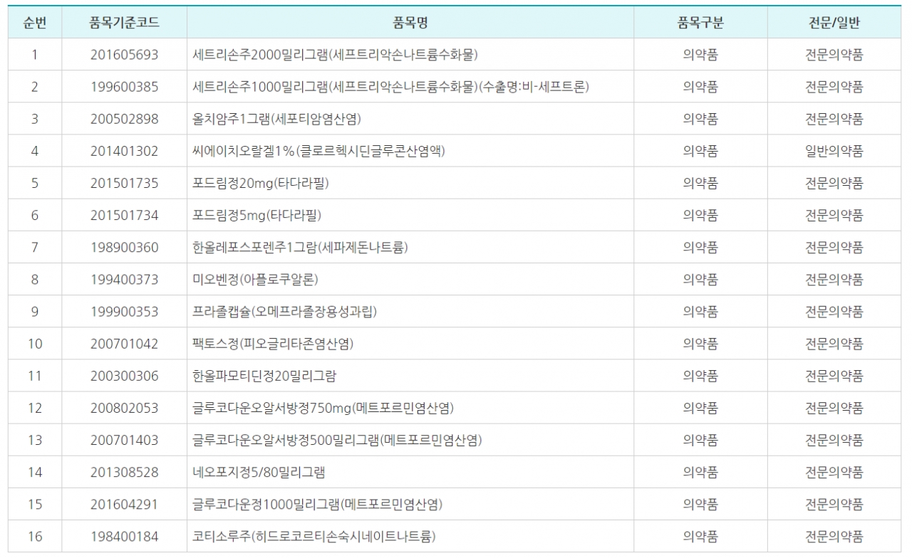 한올바이오파마는 ▶ 코티소루주(히드로코르티손숙시네이트나트륨) ▶ 세트리손주2000밀리그램(세프트리악손나트륨) ▶ 세트리손주1000밀리그램(세프트리악손나트륨수화물)(수출명:비-세프트론) ▶ 올치암주1그램(세포티암염산염) ▶ 씨에이치오랄겔1%(클로르헥시딘글루콘산염액) ▶ 포드림정5mg(타다라필) ▶ 포드림정20mg(타다라필) ▶ 한올레포스포렌주1그람(세파제돈나트륨) ▶ 미오벤정(아플로쿠알론) ▶ 프라졸캡슐(오메프라졸장용성과립) ▶ 팩토스정(피오글리타존염산염) ▶ 한올파모티딘정20밀리그람 ▶ 글루코다운오알서방정500밀리그램(메트포르민염산염) ▶ 글루코다운오알서방정750mg(메트포르민염산염) ▶ 네오포지정5/80밀리그램 ▶ 글루코다운정1000밀리그램(메트포르민염산염) 등 16품목의 공급내역 보고를 거짓으로 꾸며낸 것으로 풀이된다.