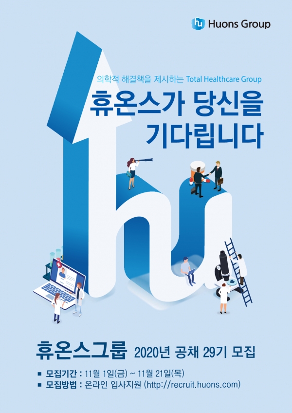 휴온스그룹 인사 담당자는 "미래 산업으로 각광받고 있는 제약•바이오 산업에서 매년 새로운 성장의 역사를 쓰고 있는 '휴온스그룹'과 비전을 함께 할 우수한 인재를 모집하고 있다"며 "인성과 전문성을 겸비한 인재들이 많이 지원해 그룹의 성장에 새로운 활력을 불어 넣어주길 바란다"고 했다.
