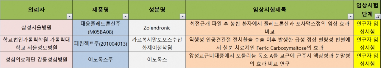 최근 2주간 40건의 임상시험이 승인됐다. 대웅제약과 삼진제약은 자사 신약후보물질로 각각 환자군과 적응증 확대를 위한 임상에 도전한다. 대웅은 SGLT-2 억제제, 삼진은 안구건조증 경구제를 개발 중이었다.