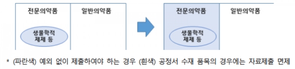 현재 생물학적제제를 제외하고 대한약전 등 공정서 수재 품목은 제출 면제됐다.