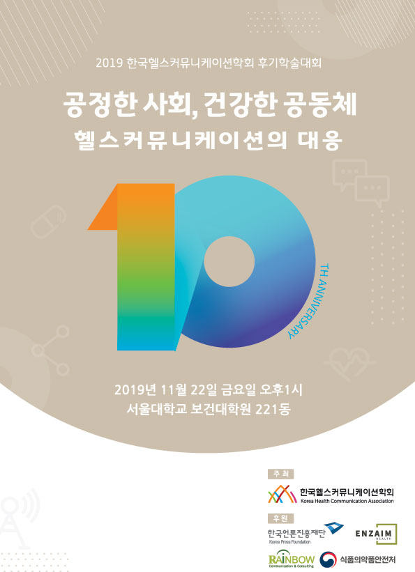 학회 관계자는 "2009년 건강한 사회를 만들기 위해 효과적인 소통에 관한 이론적 기반·정책을 개발하고 실천방안을 제시하고자 창립됐다. 이후 우리나라의 건강·보건 이슈 관련 커뮤니케이션 자문·연구 과제 등을 수행하는 명실상부한 건강·보건을 위한 대한민국 유일의 커뮤니케이션 학회가 됐다"며 "공정한 사회·건강한 공동체 구축을 위한 커뮤니케이션 환경과 앞으로의 전략을 토론하는 귀중한 시간이 될 것"이라고 했다.