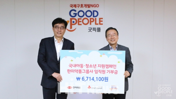 한미약품은 국내외에 각종 재해발생 시 무료 진료사업과 낙후지역 의료봉사활동에 기업의 물적자원인 의약품을 지원함으로써 생명존중을 위한 제약산업의 가장 기본적인 사명을 수행하고 있습니다. 2004년부터 현재까지 약 116억원에 달하는 의약품을 필요한 곳에 지원하였다. 특히 서울가톨릭사회복지회 부설 자선의료기관인 요셉의원에 각종 의약품과 의료소모품을 지원함은 물론 노숙자 식사지원봉사도 매년 진행했으며 1997년부터 북한 어린이들에게 의약품을 지원하고 있다.
