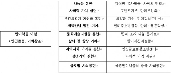 한미약품은 인간존중, 가치창조의 경영이념을 바탕으로 체계적인 사회공헌 프로그램 운영을 하고 있다. 전략적이고 투명한 사회공헌활동을 운영하기 위해 2017년 제약업계 최초로 CSR위원회를 신설했다. 해당 위원회를 통해 사회공헌활동의 진행상황 및 성과를 점검, 평가하고 향후 주요 활동에 대한 중장기 계획을 수립하고 있다.