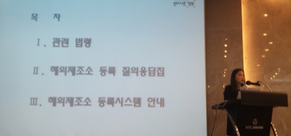 식약처 의약품관리과 이근아 사무관은 해외제조소 등록제 시행에 앞서 업계 관계자들을 대상으로 서울 삼정호텔에서 '의약품 등 제조·수입자 민원설명회'를 열어 이같이 설명했다.