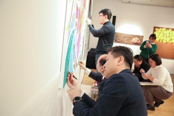 앞서 서두에 설명한 대로 이승우 대표는 이사라 작가의 작품 <COLORpool>를 낙찰 받겠다는 굳은 의지로 온화한 미소와 함께 팻말을 내리지 않았는데요. 다른 참석자들도 이 대표의 이런 의지에 따뜻한 박수를 보냈습니다.