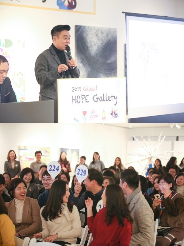 이 둘이 이런 실랑이(?)를 버린 장소는 지난 6일 종로 아라아트센터에서 열린 ‘2019 희망 갤러리’ 현장이었습니다. 길리어드가 올해로 7번째 마련한 ‘희망 갤러리’는 사회에 만연한 편견과 차별, 혐오를 상호 신뢰와 존중을 통해 개선하자는 의지를 담아 ‘We Believe’를 주제로 제시했습니다. 작가들 뿐만 아니라 예술에 조예가 있는 의료진이 작품을 출품해 연말 따뜻한 자선행사에 동참하기도 했습니다.