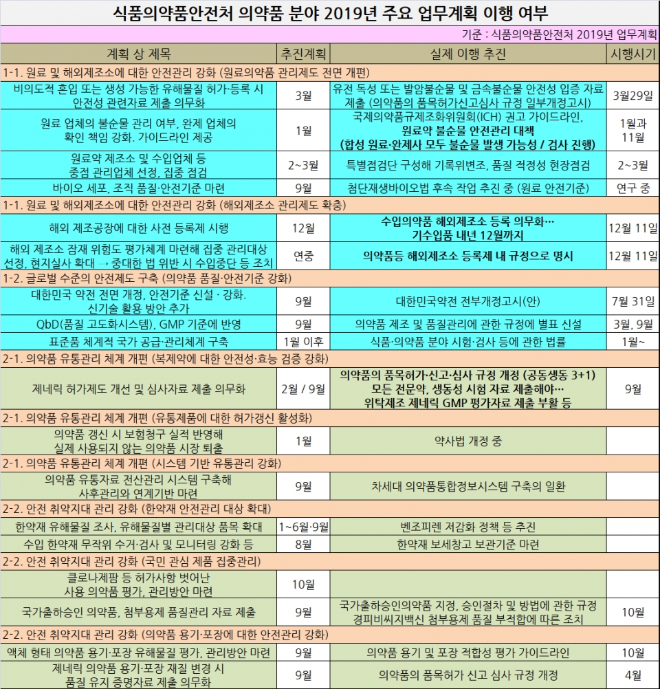 히트뉴스는 지난 1월 식약처가 발표한 '2019년 의약품 업무계획' 주요 과제들의 향방을 알아본 결과, 국외 규제기관과의 비밀유지협약을 제외하고 대부분 이행한 것으로 집계됐다.