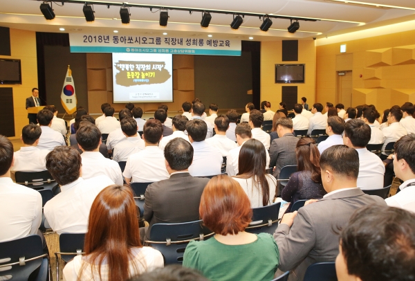 동아쏘시오그룹은 지난 16일 용두동 본사 7층 대강당에서 동아쏘시오홀딩스, 동아제약 임직원 300여 명을 대상으로 직장 내 성희롱 예방교육을 실시했다고 밝혔다.