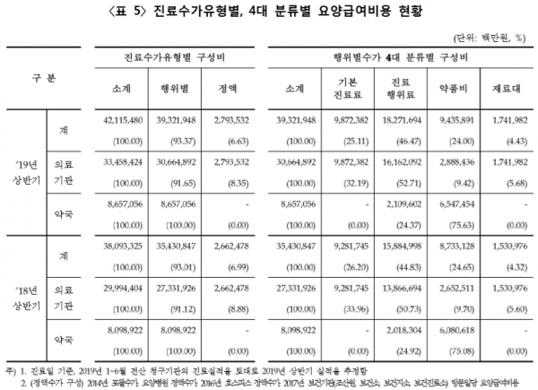 건강보험심사평가원은 이 같은 내용의 '2019년 상반기 진료비 주요통계(진료일 기준)'와 '2019년 상반기 진료비 심사실적(심사일 기준)'을 최근 공개했다.