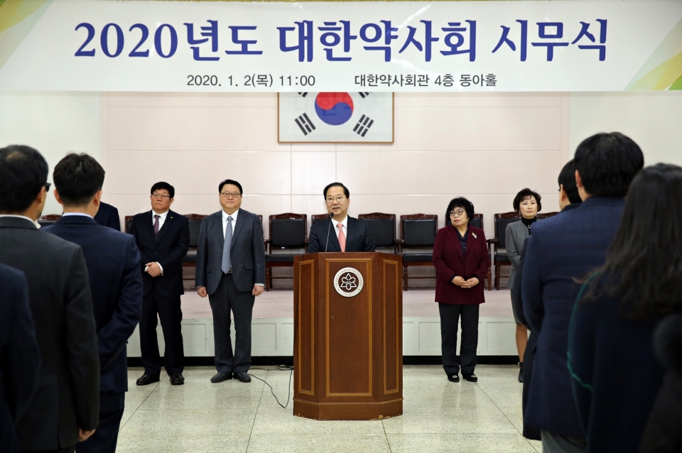 대한약사회(회장 김대업)는 대한약사회 및 서울시약사회, 약사공론, 약학정보원, 의약품정책연구소, 환자안전약물관리본부 등 유관기관 임직원이 모인 가운데 대강당에서 2020년 시무식을 열었다.