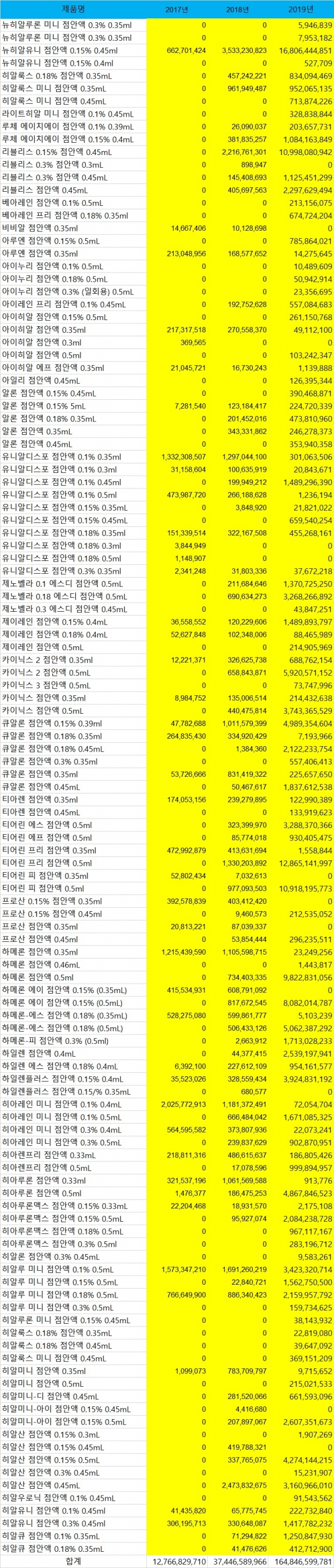 대체로 고용량은 시장에서 완전 퇴출되고 저용량(0.5ml이하) 고함량(0.15%이상)으로 안착 될 것으로 업계는 예상하고 있다.