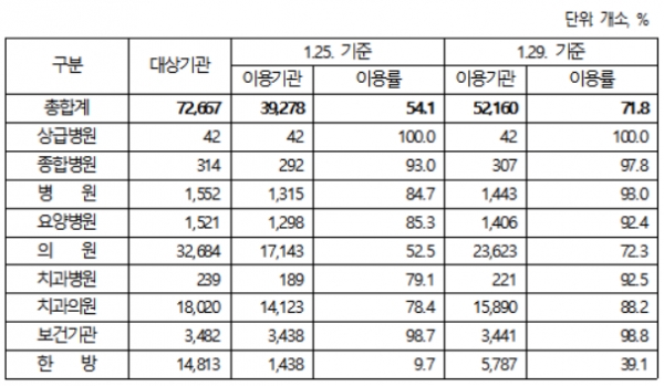 해당 병원의 경우 DUR을 통해 확인했다면, 처방 단계에서 우한 방문력 확인 여부와 의료기관이 접수단계에서 감염병 발생국 입국자 여부를 확인 가능한 ITS가 구동돼야 한다. 심사평가원 제출 자료에 따르면, DUR 이용률은 99.8%에 이르는 반면 ITS 이용률은 1월 25일 현재 54.1%에 불과한 것으로 나타났다. 의원급은 52.5%에 그치고 있다.