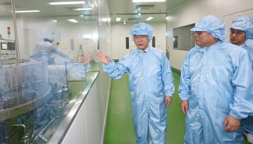 홍 부총리는 공장시설을 둘러보고 현장 간담회를 통해 업계 애로사항을 들었다. 현장 방문지로 신풍제약을 택한 이유는 중국 천진 공장을 운영하며 코로나19 사태에도 흔들림 없이 수출을 이어가고 있기 때문. 특히 말라리아, 뇌졸중 치료제 등 신약개발 성과를 계속 만들고 있다.