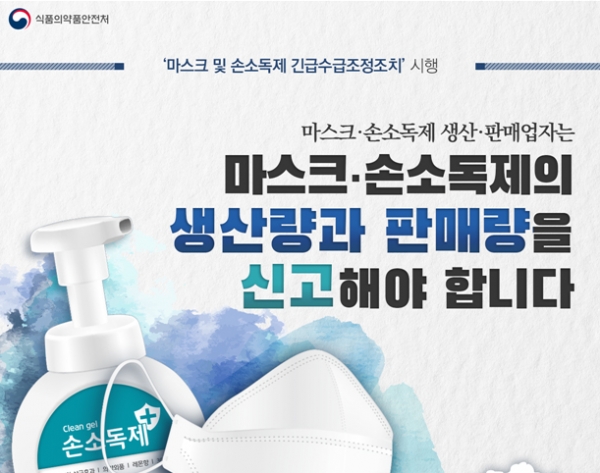 식약처, 26일부터 마스크 및 손소독제 긴급수급조정조치 시행