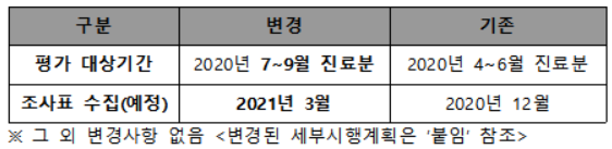 하구자 심사평가원 평가실장은 "감염병 최전선에 있는 의료기관이 국민건강 수호에 전념하도록 대상 진료분을 연기했다"며 "국민 안전을 최우선으로 정부·병원 협조 방안을 지속 모색하겠다"고 전했다.