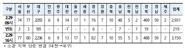중앙방역대책본부 29일 16시 기준 국내 확진자 3150명