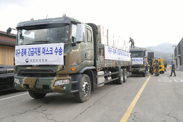 이번에 지원한 군 인력과 차량은 부산, 인천, 전북 전주, 경기 파주, 경기 안성, 강원 동해 등의 마스크 생산 업체에 투입돼 제품 포장과 배송 임무를 맡았다.