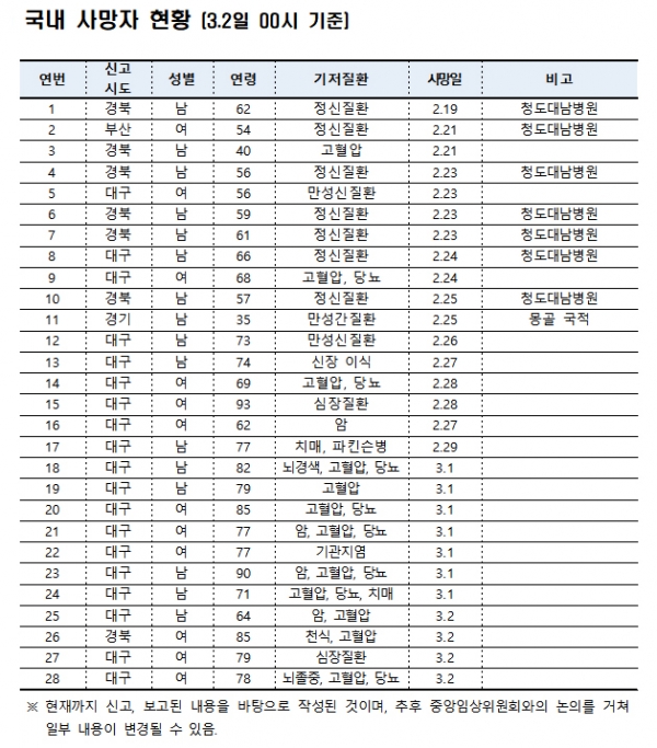 사망자도 6명이 늘어 28명으로 집계됐다. 현재 검사가 진행 중인 유증상자들이 3만 5555명이 있어 확진자는 더 추가될 것으로 보인다.