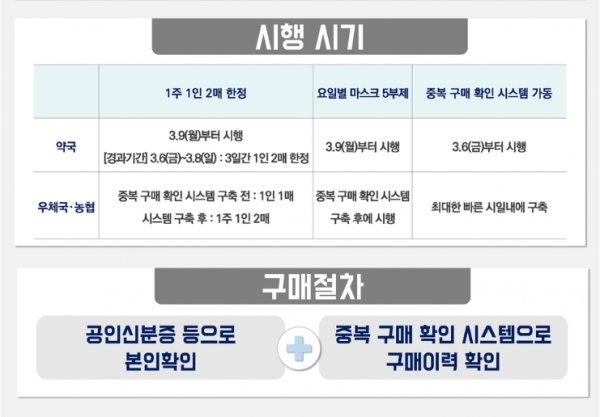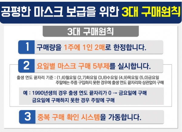 - 마스크 '주 1인 2매·5부제·중복구매 확인'… 내일부터 시행