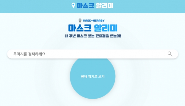 '마스크 알리미'는 위치 기반 서비스를 토대로 마스크를 오프라인상에서 판매하는 장소 정보를 제공해 준다. 궁금한 지역을 검색하면 해당 지역을 중심으로 편의점에서 판매되는 마스크의 재고 현황을 알 수 있다.