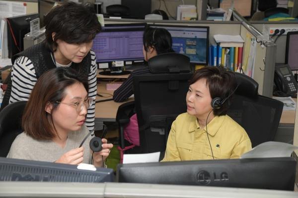 이후 과천 정부민원콜센터로 간 이 처장은 마스크 구매 관련 전화 응대에 애쓰는 상담사들을 만나 감사를 표했다.