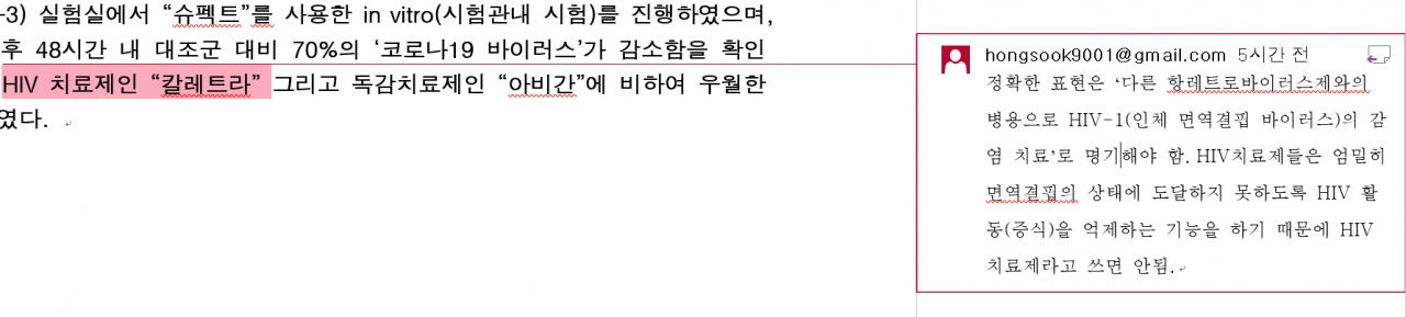 글로벌 제약사 홍보 담당자 다수에게 국내 기업 코로나19 치료제 관련 보도자료를 보여주니 표현의 정확성이 떨어진다는 지적이 있었습니다.
