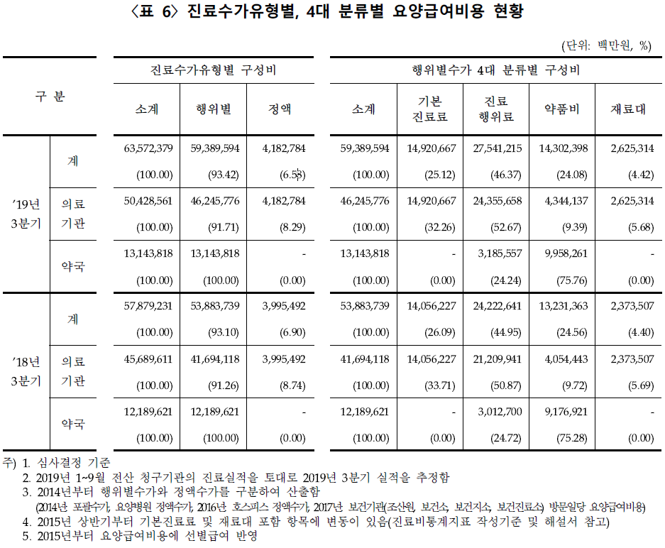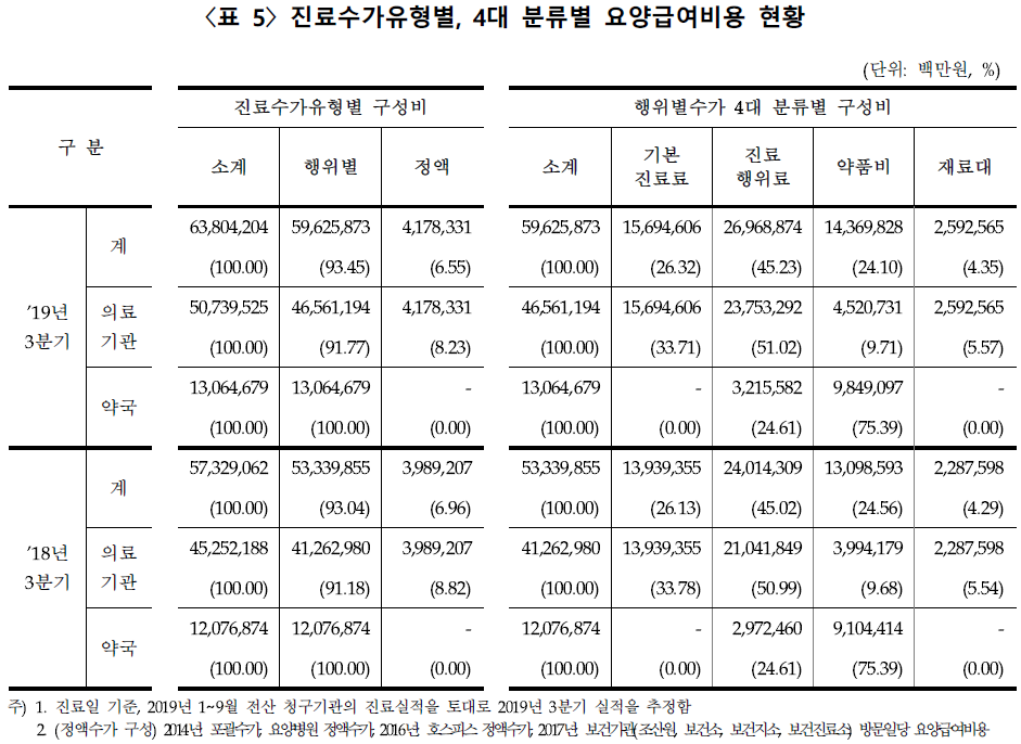 심사평가원, 2019년 3분기 진료비 심사실적 공개