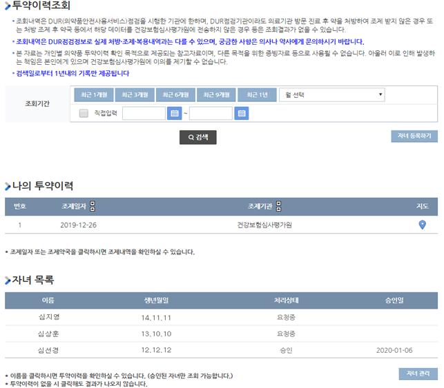 기존에는 서비스 이용을 위해 자녀의 공인인증서가 필요했으나, 이번 절차 개선을 통해 부모 공인인증서 인증과 가족관계 증빙만으로 손쉽게 14세 미만 자녀가 먹은 약의 정보를 확인할 수 있게 됐다.