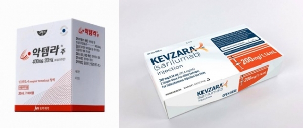 또 다른 IL-6 억제 기전을 가진 사노피의 케브자라(사릴루맙) 역시 글로벌 임상 3상을 진행하고 있다. 사노피와 리제네론은 지난 3월 미국 이외에 지역 환자를 대상으로 하는 케브자라 임상 3상을 착수했다.