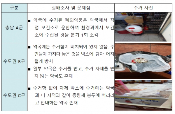 그러나 어디에 배출하고 어떻게 수거하는지 구체적인 내용을 마련하지 않아 폐의약품을 수거·처리하는 방식은 전국적으로 제각각이었다.