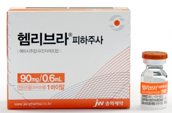JW중외제약은 투약 편의성을 개선한 A형 혈우병 예방요법 치료제 '헴리브라 피하주사(성분명 에비시주맙)'를 출시한다고 6일 밝혔다.