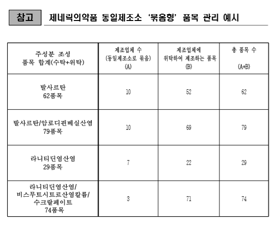 묶음형 허가란, 1개 제조소에서 제조되는 다수 업체들의 제네릭 품목들의 경우,제품명만 다를 뿐 제조소·원료·제조방법·생동자료 및 품질이 동일한 품목이기 때문에 일관성 있는 자료요건 등 허가·관리기준을 마련하고 이를 통일적으로 적용하겠다는 의미다.