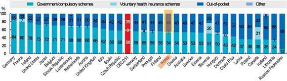 의약품 비용=우리나라는 약제비 중 국가 부담 및 민간보험을 제외한 환자 본인 부담 비율이 45%로 OECD 평균인 39%보다 다른 회원국들에 비해 6% 정도 높았다.