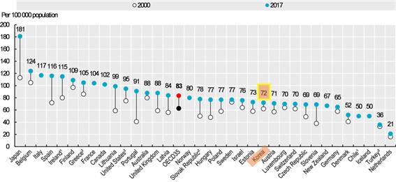 OECD는 "2017년을 기준으로 작성·발표된 이번 자료를 발간하면서 회원국들이 금융위기 이후에 보건의료체계를 더욱 생산적이고, 효율적이며, 감당할 만한 수준으로 개선하는 것이 중요하다"고 지적했다.