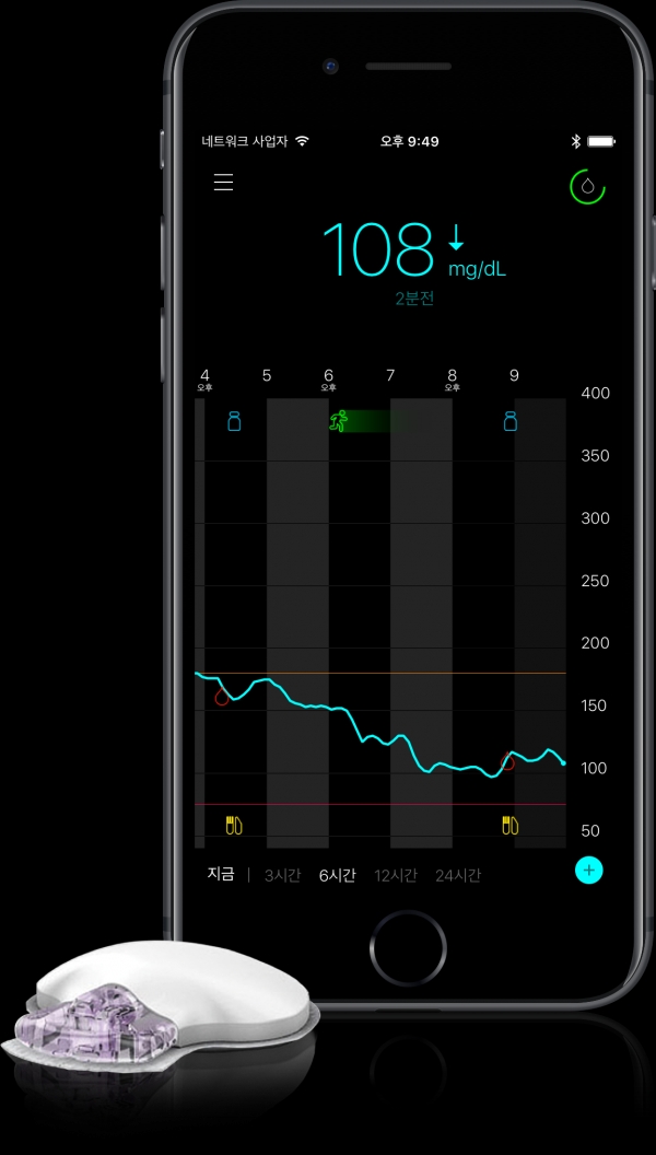 대한당뇨병학회에 따르면 연속혈당측정기는 혈당치와 혈당추세를 실시간으로 제공해주는 기기다. 손가락 끝에서 채혈하던 기존 혈당측정 방식과 다르다. 피하에 제품 센서를 부착하면 자동으로 5분마다 하루 288번 체내 혈당을 측정, 기록이 되고 스마트폰 어플리케이션(앱)과 연동되도록 구성했다.