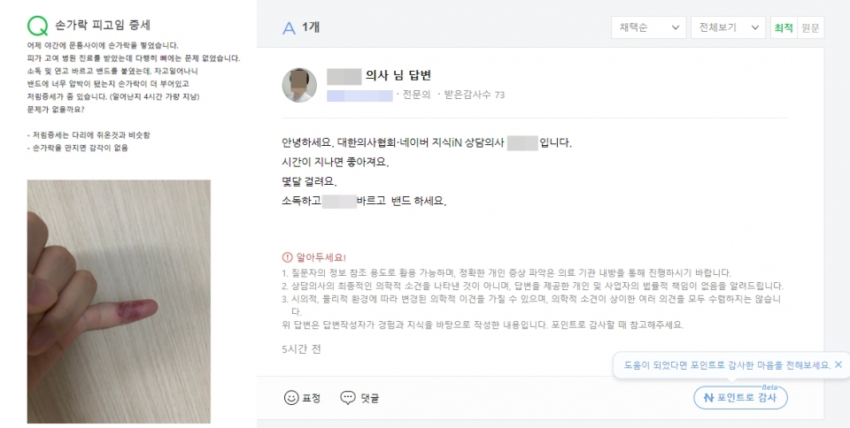 2009년 NHN과 대한의사협회 및 전문가단체 합의로 시작된 의사 답변 서비스는 10여년이 지난 현재, 일부 질의에서 치료에 상응하는 상담이 이뤄지고 있는 것으로 확인됐다.