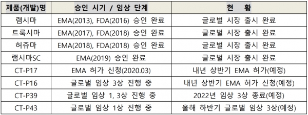 CT-P39 3상, CT-P43 1상 착수…CT-P17ㆍCT-P16와 차세대 성장동력 기대