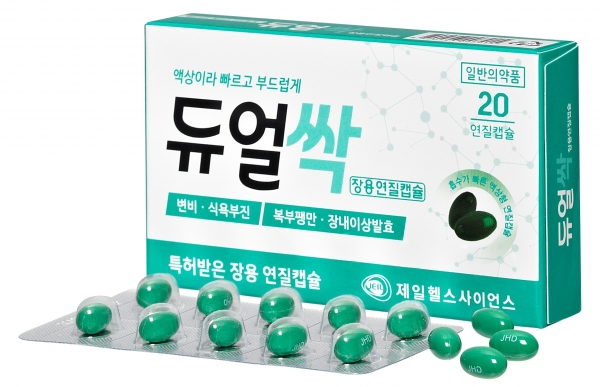 제일헬스사이언스는 특허받은 기술(출원번호 10-2015-0016180호)로 통증은 줄이고 변비는 완화시키는 액상타입 변비치료제 '듀얼싹' 장용 연질캡슐을 출시했다고 18일 밝혔다.